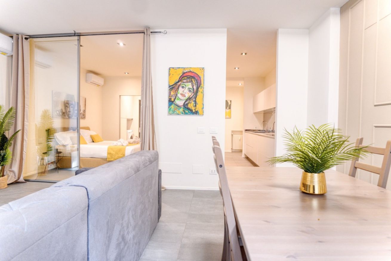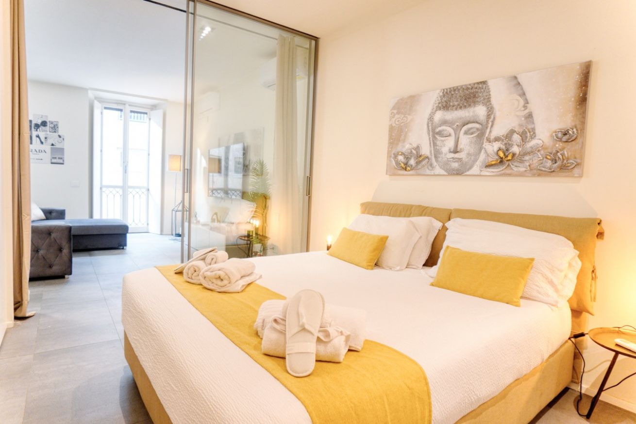Missori Prestige Grand Suite è un appartamento moderno e raffinato, progettato per offrire comfort, stile e funzionalità nel cuore di Milano. Gli spazi sono ampi, luminosi e arredati con gusto contemporaneo, con una palette di colori neutri arricchita da dettagli caldi e opere d’arte che rendono l’ambiente accogliente e distintivo.