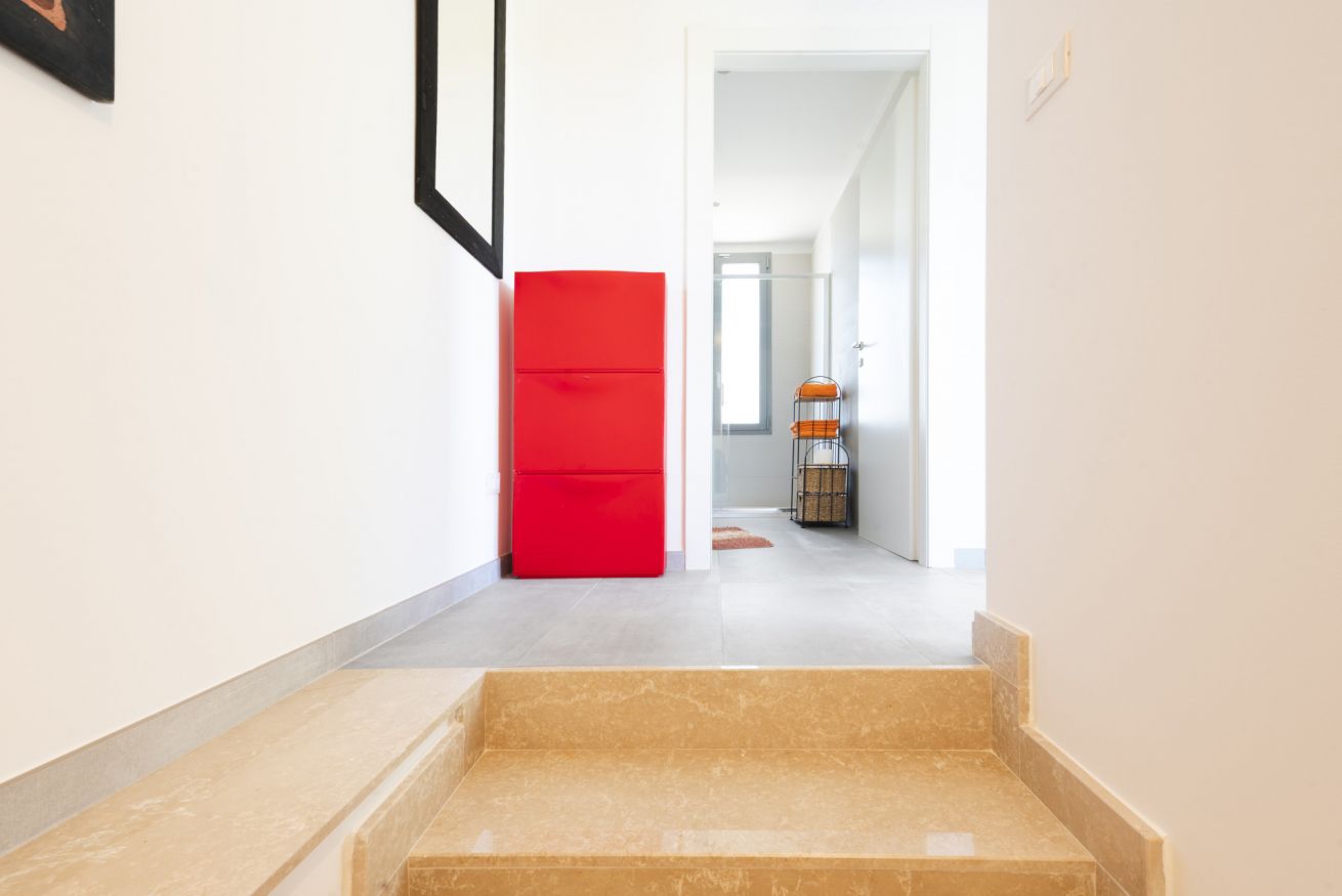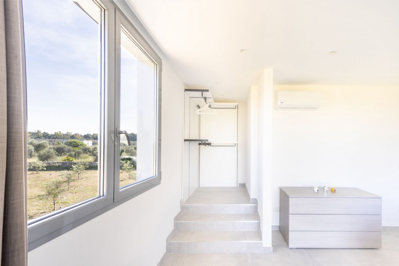 I bagni, moderni e rifiniti con materiali di qualità, includono grandi docce walk-in, sanitari sospesi e mobili lavabo funzionali. La casa è dotata di aria condizionata in ogni stanza, illuminazione a LED, infissi di ultima generazione e connessione Wi-Fi.